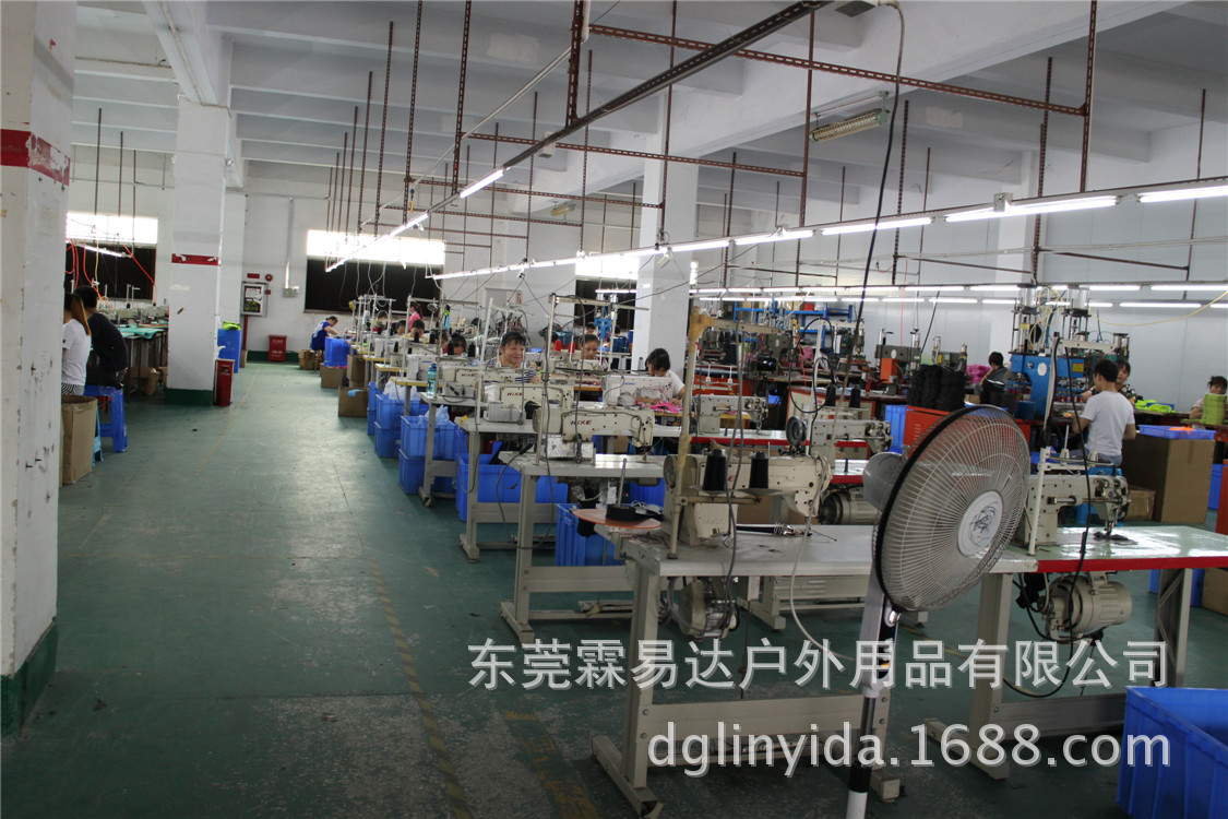 东莞霖易达户外用品有限公司,注册资本100万,前身是深圳市霖芝禾科技有限公司,成立于2012年,专注于户外用品的设计、生产与销售。公司现有人员100多人,占地面积3000多平方米,固定资产50多万元,主要有油压裁床机11台、电压机11台、DY车10台、花样车11台、激光切割机4台等,包含有户外用品生产的全流程,包括设计打板部、裁床部、丝印部、电压部、车缝部和打包部,年产值近2500万元人民币。公司的产品包括车缝板手机臂带、电压版手机臂带、防水袋、臂包、腰包等,远销至南亚、日本、澳大利亚、中东、英国、巴西、德国、美国、加拿大等地区。